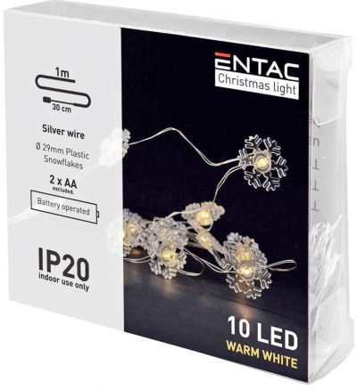 3. Entac Χριστουγεννιάτικα Εσωτερικά Πλαστικές Νιφάδες 10 LED Θερμό 1μ (2xAA Δεν περιλαμβ.)