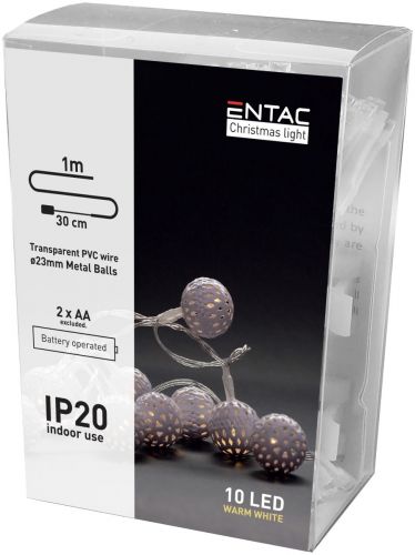 1. Entac Χριστουγεννιάτικα Εσωτερικά 10 LED Ψυχρό 1μ (2xAA Δεν περιλαμβ.)