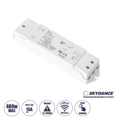 13. GLOBOSTAR® SKYDANCE-V1-L 71568 DC RF 2.4Ghz & Push Dimmer / Controller με 1 x 15A 480W Κανάλι DC 12-48V 15A 480W Max IP20 - RF 2.4Ghz & Push Dimming - Μ17.5 x Π4.5 x Υ2.5cm - 5 Χρόνια Εγγύηση