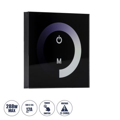 10. GLOBOSTAR® DIMTOUCH 73318 Dimmer Τοίχου με Touch Panel με 1 x 12A 288W Κανάλι DC 12-24V 12A 288W Max IP20 - Μ9 x Π9 x Υ3.5cm - 2 Χρόνια Εγγύηση