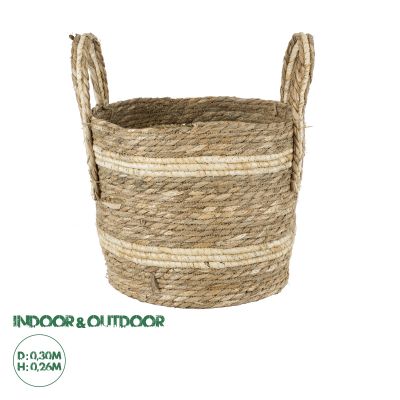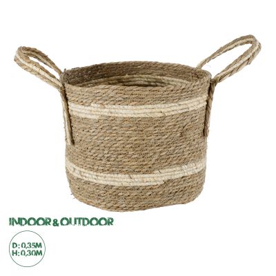 13. GloboStar® Artificial Garden IOS 20339 Διακοσμητικό Ψάθινο Καλάθι - Κασπώ Γλάστρα - Flower Pot Καφέ με Λευκό Φ18cm x Υ20cm