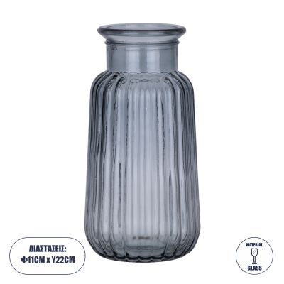 13. GloboStar® LAYLA 35601 Διακοσμητικό Βάζο Γυάλινο Γκρι Φ11 x Υ22cm