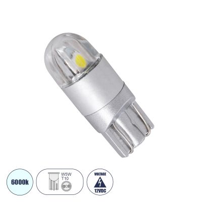 16. GloboStar® T10 W5W 81043 Λάμπα Αυτοκινήτου LED 2 SMD 3030 0.4W 60lm 360° DC 12-16V IP20 Φ1 x Υ2.5cm Ψυχρό Λευκό 6000K
