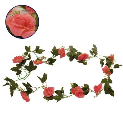 6. GloboStar® 09001 Τεχνητό Κρεμαστό Φυτό Διακοσμητική Γιρλάντα Μήκους 2.2 μέτρων με 10 X Μεγάλα Τριαντάφυλλα Κοραλί
