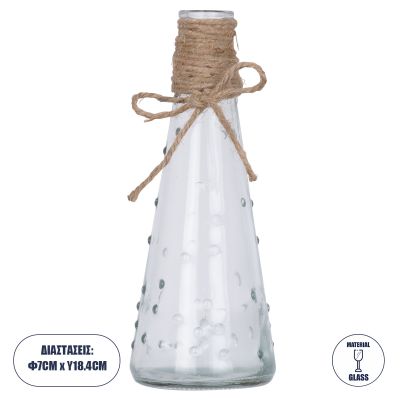 14. GloboStar® LUCY 35616 Διακοσμητικό Βάζο Γυάλινο Διάφανο με Σχοινί Φ7 x Υ18.1cm