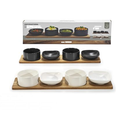 Σετ Μπολ Πορσελάνη/Ξύλο Ακακίας Σε 2 Χρώματα 4Τμχ