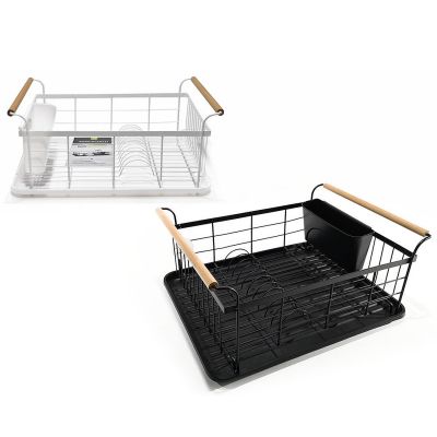 Πιατοθήκη Με Ξύλινες Λαβές Μέταλλο 44x32x20cm Σε 2 Χρώματα