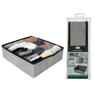 Κουτί Αποθήκευσης Με 12 Τμήματα Γκρι Ύφασμα 30x30x10cm