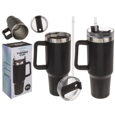 Κούπα Θερμός Με Ανοξείδωτο Εσωτερικό Με Καλαμάκι Μαύρο 1.2lt